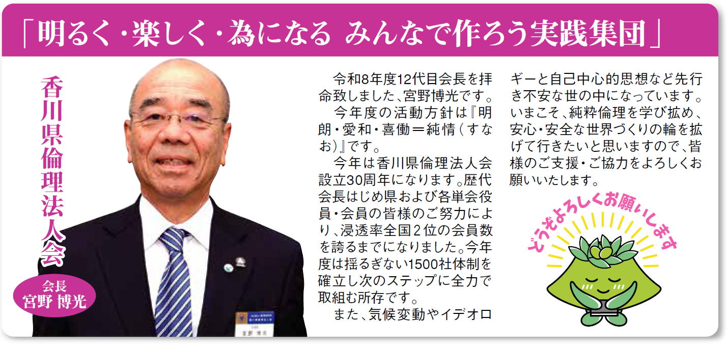 | 1 | 会長 | 宮野 博光 | 香川デコス(株) | 善通寺琴平 |