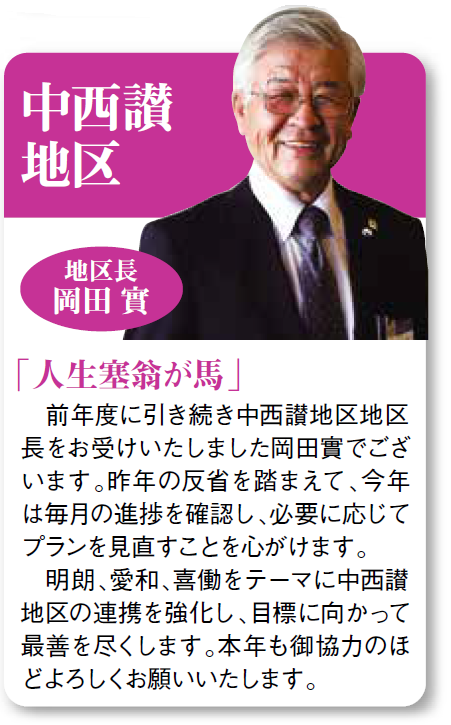| 11 | 中西讃地区地区長 | 岡田 実 | アメジアン合同会社 | 善通寺琴平 |