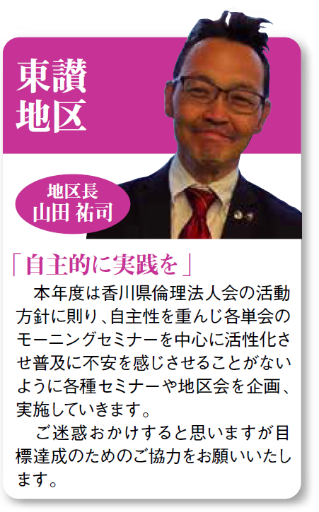 | 15 | 東讃地区地区長 | 山田 祐司 | (有)アルカディア企画 | 高松東 |